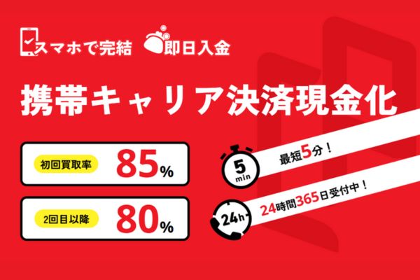 公式サイトの「最大換金率」や「最短5分で入金」はあくまで目安ですが、キャリアペイはより条件の良い取引で資金調達が行えるでしょう。